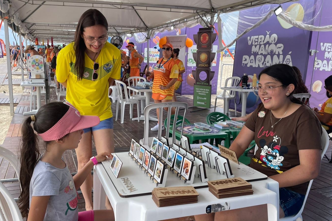 O trabalho da Secretaria de Estado do Turismo do Paraná (Setu) reforça o acolhimento e a orientação, qualificando a experiência dos visitantes durante o Verão Maior Paraná. Ao longo da temporada, o Estado mantém quatro pontos fixos de atendimento ao visitante no Litoral, além de uma equipe itinerante que percorre diferentes balneários, ampliando o acesso às informações e aos serviços ofertados.
